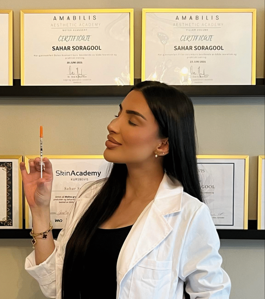 Videre har hun tatt en utdannelse innenfor kosmetiske og medisinske behandlinger gjennom amabilis acadamy, samtidig som hun har spesialisert seg innenfor flere av behandlingene hun tilbyr.